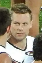 On 13 July 2015, Mitchell was found guilty by the AFL's match review panel of having kneed the right thigh of Fremantle Dockers player Nathan Fyfe during the second quarter of the previous day's game and was fined $1000 for the offence. The media then brought to light other kneeing incidents involving Mitchell, those being the kneeing of Adelaide Crows captain Taylor Walker in the Round 12 game and the kneeing of Greater Western Sydney's Ryan Griffen in Round 6 of the 2015 season.[49][50] Another kneeing video incident surfaced of Mitchell kneeing North Melbourne defender Scott Thompson. The video shows Mitchell walking up to an unsuspecting Thompson and kneeing him in the left thigh.[51] Media reports from 2008 show that an opposition club, Brisbane, expressed concerns to the AFL about Sam Mitchell's kneeing of opponents.[52]