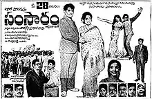 Samsaram (transl.Family) is a 1975 Indian Telugu-language drama film, produced and directed by T. Prakash Rao under the Anil Productions banner.[2] It stars N. T. Rama Rao and Jamuna.[3] The music was composed by T. Chalapathi Rao.[4]
