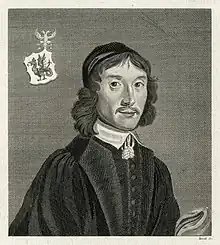 Samuel Drake was born in Pontefract,[1] although some old sources say he was a native of Halifax, Yorkshire.[2] He was baptised in Pontefract on 29 September 1622, the first of the three children of Nathan Drake (1587–1658) of Halifax and Elizabeth Higgins (died 1672).[1] He was educated at Pocklington School. He was admitted to St. John's College, Cambridge, in 1637, and obtained his B.A. degree in 1640–1. In 1643 he was admitted a fellow of that college by royal command, and in the following year proceeded M.A. He was subsequently ejected from his fellowship for refusing to take the Covenant. He afterwards joined the Royalist army, and was a member of the garrison at Pontefract, and present at the Battle of Newark. In 1651 the Parliament ordered him and several other ministers to be tried by the High Court of Justice on suspicion of conspiracy, but the result is unknown. At the Restoration he was presented to the living of Pontefract, and in 1661 he petitioned the King to intercede with the vice-chancellor of Cambridge University that he might proceed to the degree of B.D., as he had not been able to keep his name on the college books, and sent certificates to show that he had served with the army, and that his father's estate had been plundered. In November 1661 Charles II complied with his request, and in a letter of Williamson Drake says the vice-chancellor permitted him to proceed D.D. after "long bickerings". In 1670 he was collated to a prebend of Southwell, which he resigned the following year.[2] He died in 1679,[1] although some old sources give the earlier date of 1673.[2] He left a son, Francis Drake, vicar of Pontefract, who assisted Walker in the compilation of The Sufferings of the Clergy, and whose sons, Samuel and Francis, were separately notable.[3]