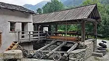 The Robbia hydro-electric power station, which has an installed capacity of 27 MW and is fed by a pressurised pipe-line from Cavaglia, is situated some 400 metres (1,300 ft) from the centre of the village. The outfall of the station is fed into the Poschiavino river. Alongside the power station is an operations centre, responsible for managing all the production facilities and networks owned by Repower in Switzerland, including the Robbia station.[1][3]