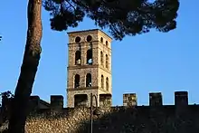 Construction was begun in 1242 and completed in 1268; refurbished in 1643-1644.[1] At one time it was endowed with numerous relics and richly decorated. The adjacent convent was linked to the early life of the Blessed Columba of Rieti, after whom the piazza in front of the church is named. The church had a single nave and the facade is built with travertine stone. The Romanesque belltower has a number of bells. It was abandoned in the 18th century, and in 1779, the diocese had proposals to raze the structure and rebuild a new church. The church was suppressed in 1810, but returned after the end of Napoleonic occupation. However again with the establishment of the Italian rule over the Papal states, in 1862 the Dominicans were again expelled, and the convent was used as army barracks. The church was deconsecrated by 1890, and used as a garage or armory.