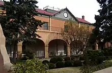 This was Albuquerque's first public school, built by the Jesuits in 1878. It is a one-story, gable-roofed building with a wooden cupola and particularly fine Territorial style trim.[4] The school is separately listed on the National Register of Historic Places.