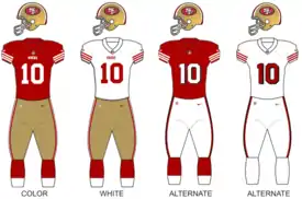 - ↑ Hanzus, Dan (May 1, 2015). "49ers unveil first alternate uniform in team history". NFL.com. NFL Enterprises, LLC. Archived from the original on September 18, 2017. Retrieved February 2, 2022.