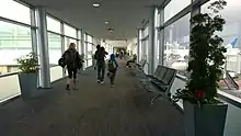 The first nine gates at the newly reconstructed Boarding Area B opened on July 23, 2019, with Southwest Airlines and JetBlue becoming the first tenants. JetBlue operates two gates preferentially (B6 and B7) and shares one with Southwest (B8), while Southwest operates five gates preferentially (B9, B12-B14, and B17).[104] In late-April 2020, the terminal's new lobby opened, with new ticket counters for Southwest and JetBlue, and a new permanent exhibit honoring Milk.[105][106] On May 12, 2020, in conjunction with the launch of nine new gates at Boarding Area B (B19-B27), American Airlines moved into the new facility, with new ticket counters, baggage systems, and a new Admirals Club lounge. American operates six of the nine new gates preferentially (B22-B27).[107][108] The final seven Boarding Area B gates (B2-B5, B10-B11, B15-B16) in the new terminal opened on May 25, 2021.[109]