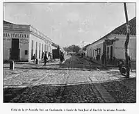Fifth avenue of Guatemala City in 1911. The fort is at the end of the street.