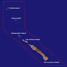 San Lorenzo Marine Archipelago National Park is a national park of Mexico located on San Lorenzo Island part of an archipelago in the Gulf of California off the eastern coast of Baja California. The San Lorenzo Archipelago is considered one of the most important ecological areas of the Gulf of California. The Island and surrounding areas are part of a rich ecosystem comprised by a grand variety of flora and marine fauna. This area is protected by the Mexican federal government Norma Oficial Mexicana NOM-059-SEMARNAT-2001[1] because of its importance as a habitat for several endangered species. The Archipelago is part of the municipality of Mexicali, Baja California. The island is located southeast of the city separated by the Salsipuedes Channel.