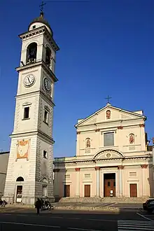 San Michele, locally called in dialect, Gésa Granda, is the Roman Catholic parish church located in the city center at Piazza Dante Alighieri in the town Cameri, province of Novara, Piedmont, Italy.