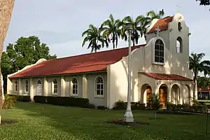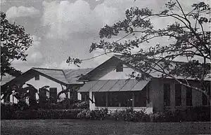San Tomé was built as a service camp for Mene Grande in the late 1930s, with construction continuing through the 1950s. E.E. "Gene" Brossard, the MGO District Manager for Eastern Venezuela, founded the town.[2] The contractor Gustavo A. San Roman constructed it. Henri Pittier, a Swiss botanist, engineer, and teacher supplied some of the trees for the town.[2] North Camp was designed for the American staff and offices of MGO, while South Camp was designed for Venezuelan workers. Since North Camp was an industrial site within barbed wire fencing for security, a constricted atmosphere was created, and the residents of the camp were sometimes nicknamed "Santomaniacs". An Industrial Hospital is located in San Tomé, the golf course Campo de Golf San Tomé is located just north of the town, and an elementary school is available for employee children.[3] For many years the principal landmark of the town was its red and white water tower.[15]