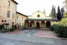 San Vivaldo Monastery is a Roman Catholic convent, church, and sanctuary complex located outside of the town of Montaione, region of Tuscany, Italy. The eighteen distinct chapels on this hill, putatively corresponding to sites of the Holy Land, and containing vivid polychrome statuary groupings recalling events of the New Testament, specially the Passion of Jesus, are one of the few examples of the Sacri Monti complexes in Tuscany. Sacri Monti are more characteristic expressions of veneration in the Piedmont and Lombardy. The convent still houses the franciscan order.