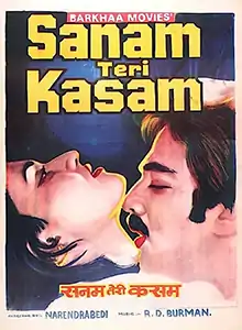 Sanam Teri Kasam (transl.Swear on you, my beloved) is a 1982 Indian Hindi-language film directed by Narendra Bedi[1] and produced by Barkha Roy, starring Kamal Haasan, Reena Roy, Kader Khan, Ranjeet, Jeevan.Movie's storyline is somewhat similar to Shammi Kapoor hit Tumsa nahin dekha. The film became a hit at the box office and was more successful in the big cities.[2][3][4]