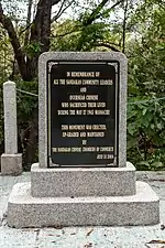 Sandakan Massacre Memorial (Malay: Tugu Peringatan Pembunuhan Beramai-ramai Sandakan) consists of three monuments which commemorate 30 Chinese victims, most of the members are local elite of an underground movement who been executed on 27 May 1945 along with several other victims during the Japanese occupation of North Borneo. The memorial was built on the spot where the massacre took place and where the victims were buried. It is located near a Chinese cemetery on a hill above the old town centre of Sandakan.