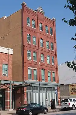 The Sanitary Laundry Company Building is a historic building located at Baltimore, Maryland, United States. It is a five-bay wide, five-story brick loft building constructed in 1883. The façade features a cast-iron storefront at street level and the elaborate decorative brickwork and terra cotta ornamentation on the upper floors reflect the influence of the Queen Anne style. It was built originally as a slaughterhouse and meat packing plant until 1897, when it was converted to a commercial laundry.[2]