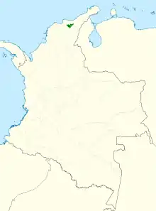 The Santa Marta wren is found only in the Sierra Nevada de Santa Marta of northern Colombia. It inhabits the edges of elfin forest, páramo, and scrub at tree line. In elevation it ranges from 3,200 to 4,800 m (10,500 to 15,700 ft).[3]