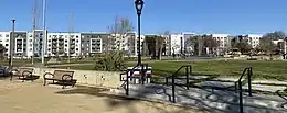 Top: Ramac Park; middle: shops on Village Oaks Dr; apartments on Palmia Ave; bottom: view of the Santa Teresa Hills from Ascent Apartments; apartments on Vía del Oro.