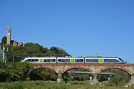 The railway bridge over the torrent Elvo. In transit an electric Minuet train