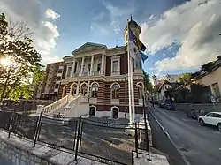 The building of the Olympic Museum, the “Mandić Villa”, was built for the lawyer in Sarajevo, Nikola Mandić in 1903, according to the project of Karel Pařík. It used to be the seat of the American Consulate, and more recently of the City Committee of SC Sarajevo.[1] The Villa was built on the very edge of the slope with a beautiful view of the city according to the pattern of the courts and palaces of the aristocracy. It is connected to the Markale market and the center of Sarajevo by a series of stairs. Behind it peeks the tower of the villa of Heinrik Reiter, one of the directors of the brewery in Sarajevo, which was also designed by Pařík at the same time as Mandić's villa was built.