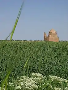 Several battles were fought in this area. According to Ferdowsi's Shahnameh the town has existed since the Afrasiab period and was named for its builder, Sarakhs, son of Godarz, by Keykavus. The surrounding oasis has been inhabited since 2nd millennium BCE and Turkmen historians consider the city to have been founded in 507 BCE. Although this is considered to be a somewhat arbitrary choice of date,[8] the section of the city called Sarahs that's now on the Turkmenistan side of the border, duly celebrated its 2500th anniversary in 1993.[9] The Mongols plundered and destroyed Sarakhs in 1221 AD.[5] In the Seljuk Era a famous school of architects was located in Old Sarakhs, and the region retains the tombs of three major 11th-century figures, two on the Turkmenistan side of today's border (those of Abul Fazl, and the 1089 Yarty Gumbez, mausoleum of Sheikh Ahmed Al Khady) and the impressive Tomb of Baba Loghman on the Iranian side. All were significantly rebuilt in the mid-19th century by the order of Naser al-Din Shah Qajar of the Qajar dynasty, who also rebuilt the current Iranian-side town .[5]