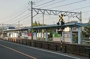Sasaya Station has one island platform with a level crossing, serving two tracks. There is a ticket window, a proof-of-departure ticket machine, a restroom, and a beverage vending machine located at the station.
