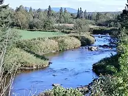 ![]() Rivière Sauvage seen from the Highway 108 bridge looking east. The Mont Sainte-Cécile is in the background. | |