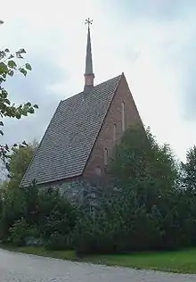 The Stone Sacristy is located in Porrassalmenkatu in Savilahti, Mikkeli, Finland and is the sacristy of the old church, which was preserved when the church was destroyed. The walls of the original building, which once had log end triangles and a flat wooden roof as an extension, have been preserved.