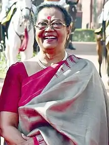 Savita Kovind (born 15 April 1952) is a former Indian government servant who served as the former First Lady of India from 2017 - 2022. She is the wife of the 14th President of India, Ram Nath Kovind. She was Chief Section Supervisor in Mahanagar Telephone Nigam Limited before retiring in 2005.
