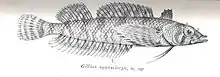 - ↑ Christopher Scharpf; Kenneth J. Lazara (29 January 2019). "Order BLENNIIFORMES: Families TRIPTERYGIIDAE and DACTYLOSCOPIDAE". The ETYFish Project Fish Name Etymology Database. Christopher Scharpf and Kenneth J. Lazara. Retrieved 28 May 2019.