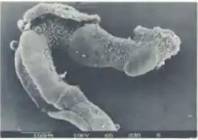 - ↑ Jurberg, A. D.; Gonçalves, T.; Costa, T. A>; Mattos, A. C. A.; Pascarelli, B. M.; Manso, P. P. A.; Ribeiro-Alves, M.; Pelajo-Machado, M.; Peralta, J. M.; Coeloho, P. M. Z.; Lenzi, H. L. (2009). "The embryonic development of Schistosoma mansoni eggs: proposal for a new staging system". Development Genes and Evolution. 219: 219–234.