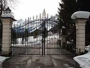 When Archduke Franz Ferdinand became interested in the estate, it was transferred from the Austrian state to the Habsburg private property in 1908.[2] Franz Ferdinand was able to acquire practically the entire valley,[2] creating a hunting estate with 14,000 hectares of forest.[5] He used the castle as a hunting lodge.[2] He engaged the Viennese architect Ludwig Simon to convert and expand the castle in historicist style and “embellish” the former Renaissance fronts with Neo-Renaissance decor.[6][2] Also, an additional floor was added to the building changing its proportions.[6][2] For the interior, he engaged the Viennese firm Sigmund Járay.[6] The aim was to find furniture in the art trade that once belonged to Prince-Archbishop Wolf Dietrich or at least came from his time.[2][6] However, the heir to the throne could not enjoy his new hunting lodge for long, as the construction work was not completed until 1913 and he was assassinated in Sarajevo the following year, which triggered the First World War.[2] Shortly before, he had killed a white chamois in the Blühnbach area, which gave new fuel to the old hunter's superstition that shooting down a white animal is bad luck.[2]