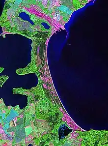 Satellite photograph of the Schmale Heide with the Sassnitz Ferry Port in the north and the Baltic Sea resort of Binz in the south
