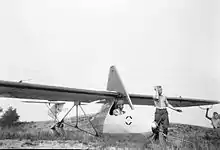 The Grunau 9 first flew in 1928. The following year, Schneider made changes to the tail and introduced a new and (it turned out) temporary naming convention involving the year, redesignating it as the ESG 29, though it was not a unique name.[1] After its formation in 1933, the Deutsche Forschungsanstalt für Segelflug (DFS) gave it the type number DFS 108-10.[2] The positioning of a wooden strut immediately in front of the pilot's head led to the type being nicknamed the Schädelspalter, or skullsplitter.[3] Large numbers were built and sold widely over several years.[1] At least one Dutch registered Grunau 9 remained active after World War II.