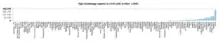 The research firm Battelle estimates that China's GERD will exceed that of the United States by 2023.[29] However, several convergent factors cast doubt over the accuracy of Battelle's prediction: the deceleration in China's rate of economic growth in 2014, the considerable drop in industrial production since 2012 and the major stock market slide in mid-2015. After progressing rapidly for a decade, GERD stabilized at 2.07% of GDP in 2015.[30]