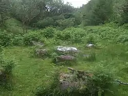 Scotia's Grave or Scota's Grave[1] is a rock feature south of Tralee in County Kerry, Ireland. It is beside a stream called the Finglas, in a wooded glen called Gleann Scoithín, anglicized 'Glenscoheen' or 'Glanaskagheen'.[2] According to Geoffrey Keating's Foras Feasa ar Éirinn (17th century), it is the burial place of Scota, an ancient queen of the Milesians (Gaels) who died there in battle with the Tuatha Dé Danann.[3] John O'Mahony translated Gleann Scoithín as "vale of the little flower" and said it is the Irish equivalent of the female name Flora.[3] According to the National Monuments Service, "Following a site inspection in 1999 it was concluded that the evidence was not sufficient to warrant accepting this as an archaeological monument".[4]