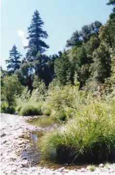 The watershed covers the Franciscan Complex, a wide variety of sedimentary rocks scraped up and attached to the advancing North American Plate.[9] Rocks include sandstone, or greywacke, mudstone, greenstone and serpentinite.[10]