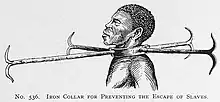 Iron collar to prevent slaves from escaping. Also a form of torture.