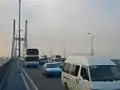 The bridge was completed in 1995 with four lanes of traffic capable of handling 50,000 vehicles per day.[2] The bridge featured a median reserved for a branch line of the then planned Wuhan Metro Line 1. By the 2000s, due to growth in population of Wuhan, actual traffic demand using the bridge averaged 100,000 vehicles per day, peaking at 190,000 daily vehicles.[2] The metro line reservation was removed in 2003 when the bridge was renovated and expanded to six lanes.[3] With the opening of the Erqi Yangtze River Bridge downstream in 2011 typical traffic using the Second Wuhan Yangtze River Bridge was 120,000 vehicles per day.[2]