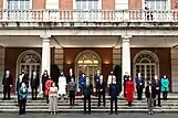 The cabinet comprised members of the PSOE (including its sister party, the Socialists' Party of Catalonia, PSC) and Unidas Podemos—with the involvement of Podemos, United Left (IU), the Communist Party of Spain (PCE) and Catalonia in Common (CatComú)—as well as independents proposed by both parties, to become the first nationwide coalition government to be formed in Spain since the Second Spanish Republic.[2][3] It has been alternatively dubbed as the "progressive coalition" (Spanish: coalición progresista), after the name of the political agreement signed by PSOE and Unidas Podemos.[4][5] It was automatically dismissed on 24 July 2023 as a consequence of the 2023 general election, but remains in acting capacity until the next government is sworn in.[6][7]