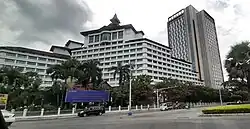 Sedona Hotel is a high end hotel in Yangon, Myanmar. The hotel consists of two buildings named Garden Wing and Inya Wing. The 29-story Inya Wing tower was the tallest building in Myanmar from May to December of 2016.[note 1]