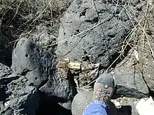 Oil stained outcrop near Kern River oilfield, in Kern County California.