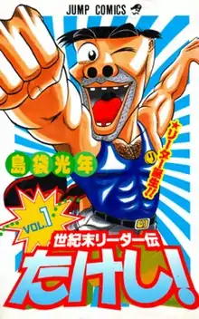 Seikimatsu Leader den Takeshi! (Japanese: 世紀末リーダー伝たけし!, Hepburn: Seikimatsu Rīdā den Takeshi!, lit. "A Tale of a Leader in The End of the Century Takeshi!") is a Japanese manga series written and illustrated by Mitsutoshi Shimabukuro. It started in Shueisha's shōnen manga magazine Weekly Shōnen Jump in July 1997. It was suspended from the magazine in August 2002, following Shimabukuro's arrest for violating child prostitution laws. Its chapters were collected in 24 tankōbon volumes. The series briefly resumed in Shueisha's seinen manga magazine Super Jump in 2005, with the added subtitle Kanketsu-hen.