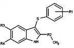 - ↑ Palmer S, Campen CA, Allan GF, Rybczynski P, Haynes-Johnson D, Hutchins A, Kraft P, Kiddoe M, Lai M, Lombardi E, Pedersen P, Hodgen G, Combs DW (Dec 2000). "Nonsteroidal progesterone receptor ligands with unprecedented receptor selectivity". The Journal of Steroid Biochemistry and Molecular Biology. 75 (1): 33–42. doi:10.1016/S0960-0760(00)00134-5. PMID 11179906. S2CID 19167595.
