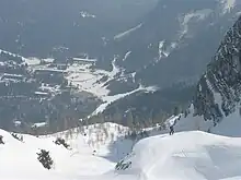 Sella Nevea (Friulian: Nevee, German: Neveasattel, Slovene: Na Žlebeh), at an altitude of 1,195 m (3,921 ft), is a high mountain pass in the Julian Alps, in the Friuli Venezia Giulia region of northeast Italy. Sella Nevea also lends its name to a frazione of the Chiusaforte municipality and the nearby Kanin-Sella Nevea Ski Resort.