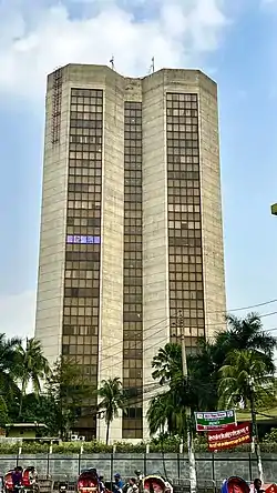 Sena Kalyan Bhaban is a 20-storied commercial building located at 195, Motijheel Commercial Area, Dhaka on an area of 1.35 bighas of land.[2] Previously, on the same space there was a rest house for ex-armed forces personnel. The foundation stone of the 21-storied Sena Kalyan Bhaban was laid in April 1982.[3] Construction was completed in August 1990. The total floor space of the building is 321,000 sq. ft. and the rentable space is 213,239 sq. ft.[3] It is a building for the Sena Kalyan Sangstha.