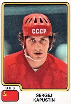 Sergei Alekseevich Kapustin (Russian: Сергей Алексеевич Капустин) (13 February 1953 in Ukhta, Russian SFSR, Soviet Union – 4 June 1995) was an ice hockey player who played in the Soviet Hockey League. He played for HC CSKA Moscow, Krylya Sovetov Moscow, and HC Spartak Moscow.
