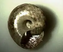 | Apertural view of a shell of Sericominolia vernicosa | |