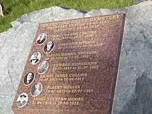 Serpentine Creek Road Cemetery, memorial for the trustees, 2006. The names of the trustees are: James Daniel Collins, Frederick Muller, Alfred Morris Wheeler, Edward Heinemann, Daniel James Collins, Albert Muller, James Stanton Moore.