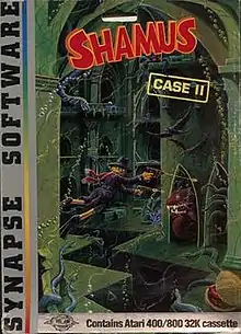 Shamus: Case II is a 1983 video game for the Atari 8-bit family written by Cathryn Mataga and published by Synapse Software.[1] Mataga also wrote the original Shamus and the scrolling shooter Zeppelin. A port to the Commodore 64 by Joe Vierra was released in 1984.[1] Although ostensibly a sequel to Shamus, the gameplay is very different, combining aspects of platform games, maze games, and even Breakout. Case II was as well received as the original.