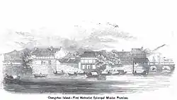 Following the footsteps of the American Board of Commissioners for Foreign Missions (ABCFM) and the Methodist Episcopal Mission (MEM), the English Church Missionary Society established a mission at Fuzhou during the spring of 1850.[1] During first few days since their arrival they resided temporarily on Zhongzhou Island (中洲岛), together with their American predecessors. As the Methodists had moved south of the River Min and the ABCFM northwards into the Nantai, the CMS missionaries, Robert David Jackson and William Welton, decided to seek assistance from the British consulate to secure premises within the walled city (which is located within the present day Gulou District). They considered Wu-shih-shan (乌石山; Black Stone Hill), the tallest hill of Fuzhou, to be the most desirable site not only because the British consulate had been located there for years already but also because, living on the hill, they would "never go out or come in without being occasionally reminded of the vastness"[2] of their work.