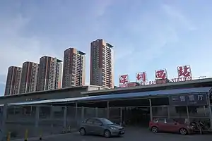 Shenzhen West railway station (Chinese: 深圳西站; pinyin: Shēnzhèn Xī Zhàn; Jyutping: sam1 zan3 sai1 zaam6) is a railway station in Shenzhen on the Pingnan railway. Constructed as a freight station in 1989, Passenger station was built during 1993, opening in 1994 for passenger use. In late 2003 it was renovated and enlarged from a few hundred square metres in area to about 3,800 m2 (41,000 sq ft). Shenzhen West railway station, originally known as Nantou railway station, is located on Xuefu Lu, Nanshan District. It is about 10 kilometers from Shekou Port.