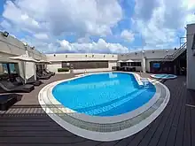 The Lai Lai Shangri-La Hotel (Chinese: 來來大飯店) opened on 24 March 1981.[4][5] Sheraton Hotels and Resorts assumed management of the hotel in 1983, and it was renamed the Lai Lai Sheraton Hotel Taipei. It was the first Sheraton hotel in Taiwan. It was renamed the Sheraton Grand Taipei Hotel on 1 July 2002.[6] The hotel underwent a general refurbishment in 2005[7] and now has 688 rooms and suites, 8 restaurants and provides facilities including a business center, fitness center, outdoor swimming pool and spa.[8]