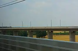 The Shijiazhuang–Jinan passenger railway, abbreviated Shiji passenger railway (simplified Chinese: 石济客运专线; traditional Chinese: 石濟客運專線; pinyin: Shíjǐ Kèyùn Zhuān Xiàn) is a high-speed railway operated by China Railway High-speed, running between Shijiazhuang and Jinan, the provincial capitals of Hebei and Shandong, respectively. The line will additionally pass through and serve cities of Hengshui, Cangzhou and Dezhou.[1] Traditionally, passengers travelling east from Shijiazhuang towards Shandong would need to detour towards Beijing or Tianjin. Its completion allowed trains to run directly between Shijiazhuang and Jinan at 250 km/h (160 mph), shortening travel times between the two cities from the previous 4 hours to 1 hour and 20 minutes.[2]